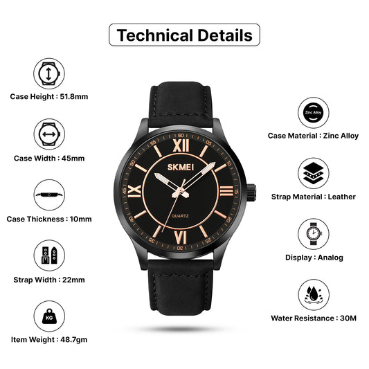 Skmei Quartz Analog Dial Leather Strap Watch for Men - 9236