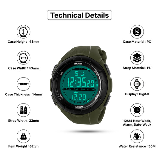 Skmei Digital Dial Silicone Strap Watch for Men - 1025