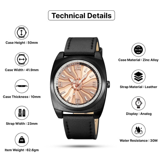 Skmei Quartz Analog Rose Dial Leather Strap Watch for Men - 2060