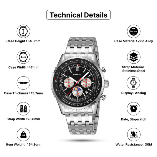 Skmei Quartz Analog Dial Stainless Steel Strap Watch for Men - 9348
