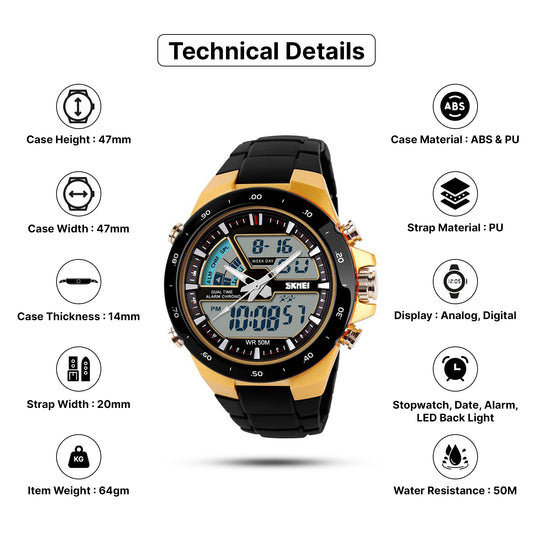 Skmei Analog-Digital Dial TPU Strap Watch for Men - 2225