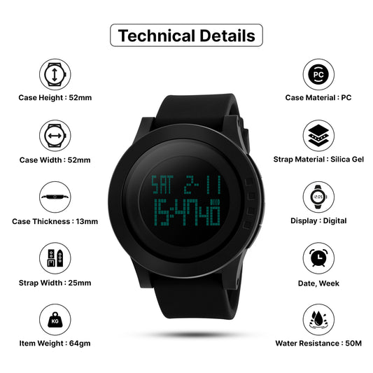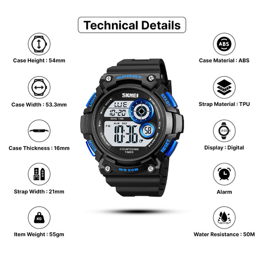 Skmei Digital Dial Rubber Strap Watch for Men - 1193