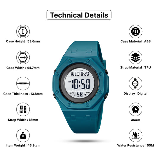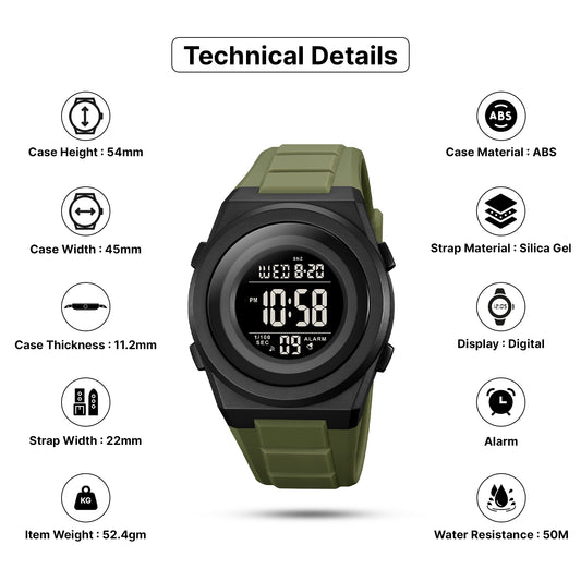 Skmei Digital Green Dial TPU Strap Watch for Men - 2022