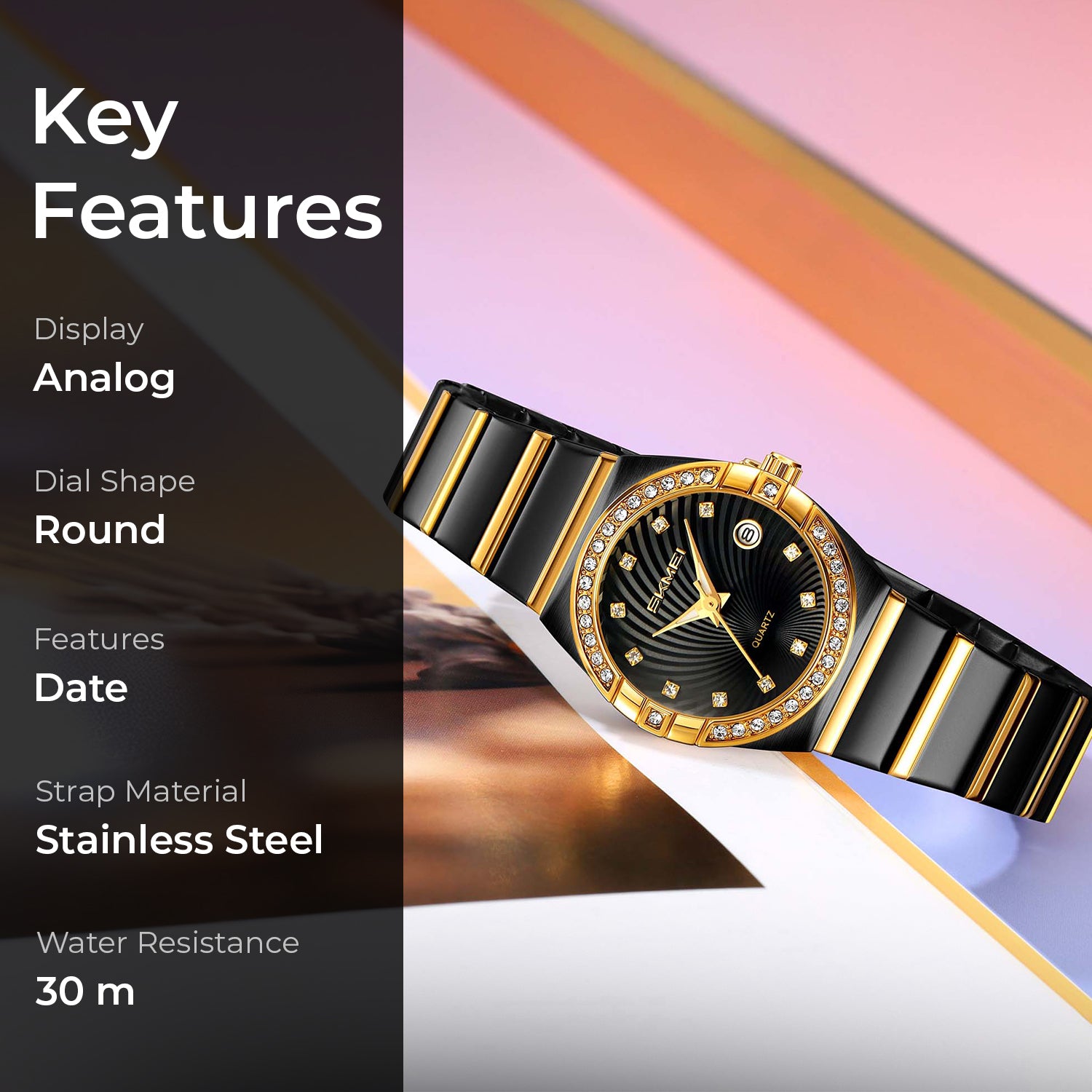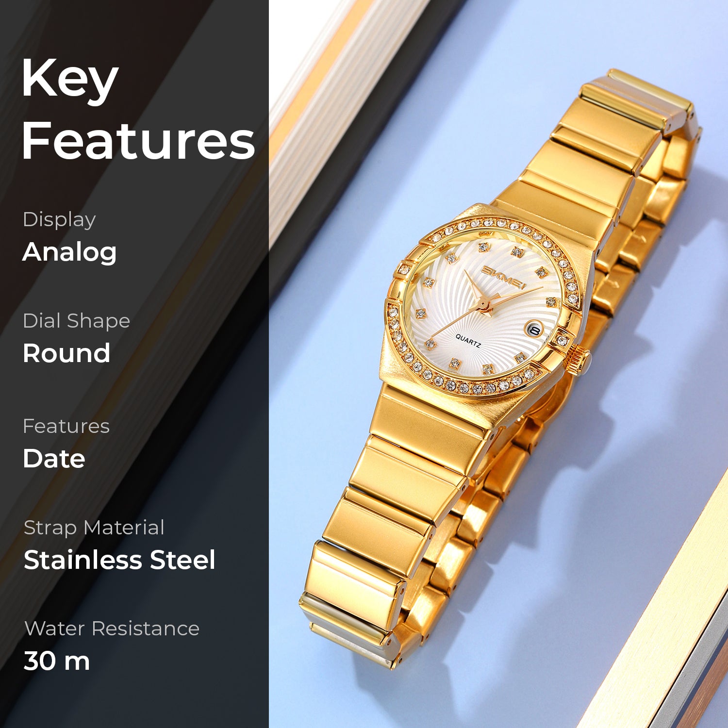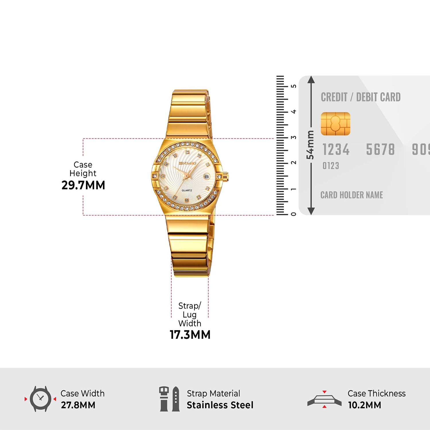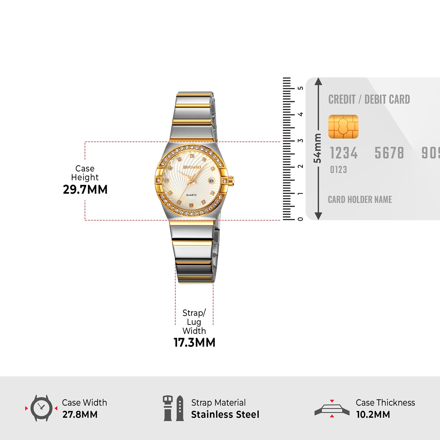 Timeless Elegance with SKMEI Womens Analog Quartz Watch 2342 Elevate your fashion statement with the SKMEI Quartz Womens Watch (Model: 2342) a stunning combination of luxury, precision, and durability . Whether youre heading to a business meeting, a casual brunch, or a glamorous evening event, this watch adds a touch of sophistication to any look. Sleek & Sophisticated Design Featuring a sparkling crystal-embellished dial and a polished stainless steel band, this watch is a perfect blend of fashion and functionality . Built for Everyday Wear Made with a durable zinc alloy case , a scratch-resistant glass , and a stainless steel band , ensuring both comfort and longevity. Water-Resistant (30M) Resistant to splashes and minor water exposure, making it suitable for everyday activities. Precision Timekeeping With a quartz movement and a reliable SR626SW battery , youll always stay on schedule. A Thoughtful Gift for Every Occasion Whether for yourself or a loved one, the SKMEI 2342 is the perfect gift for women who appreciate timeless elegance. Upgrade your accessories collection with the SKMEI Quartz Womens Watch a statement piece designed to complement every outfit!