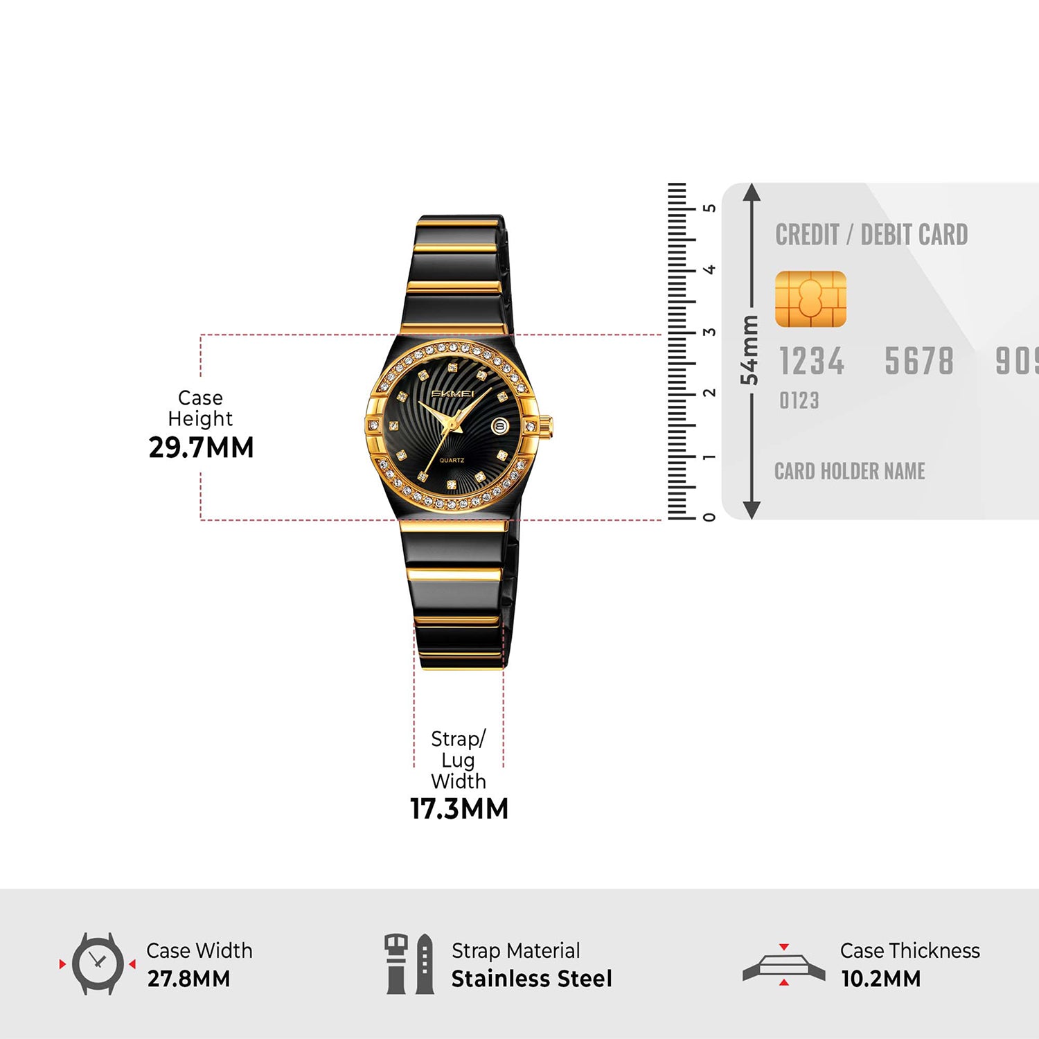Skmei Analog Black Dial Zinc Alloy Case Stainless Steel Strap Watch for Women - 2342