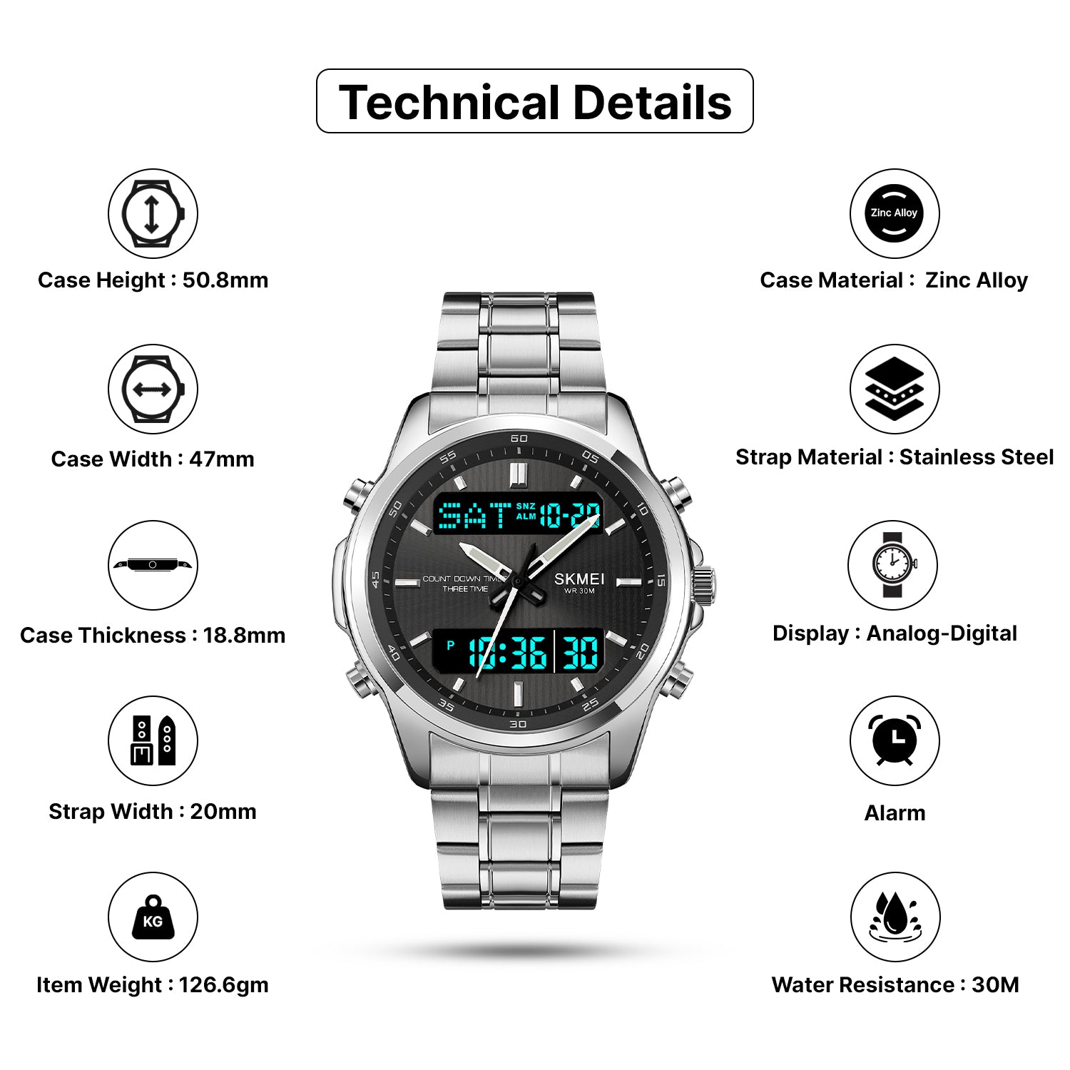 Skmei Analog-Digital Analog Dial Stainless Steel Strap Watch for Men - 2049