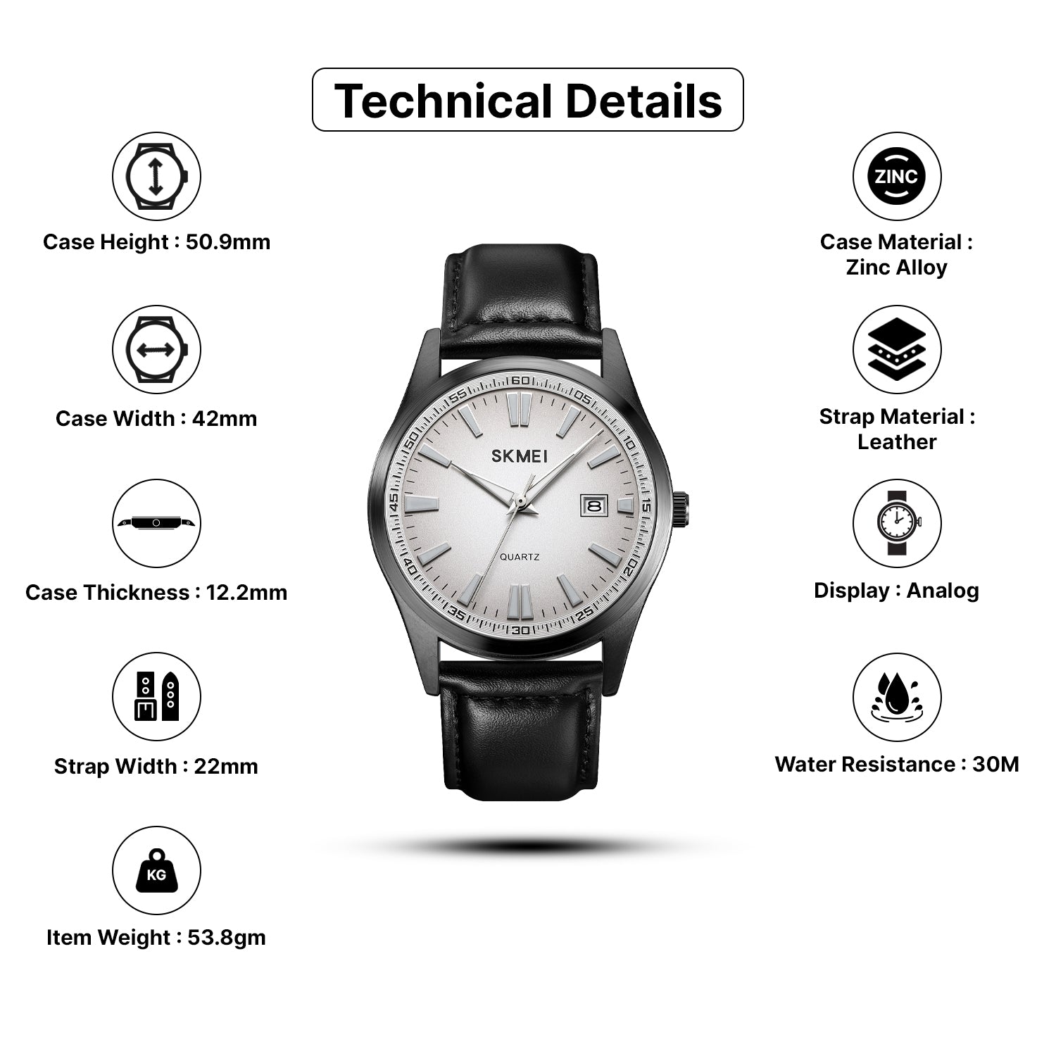 Skmei Quartz Analog Dial Leather Strap Watch for Men - 232