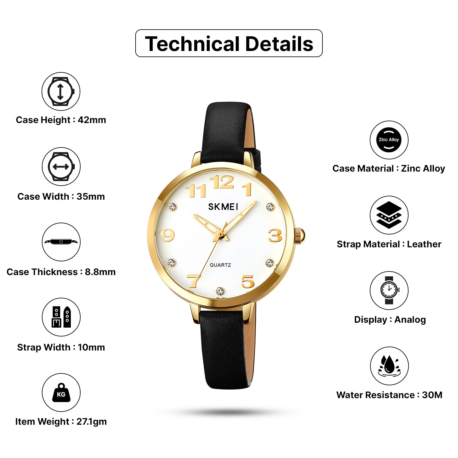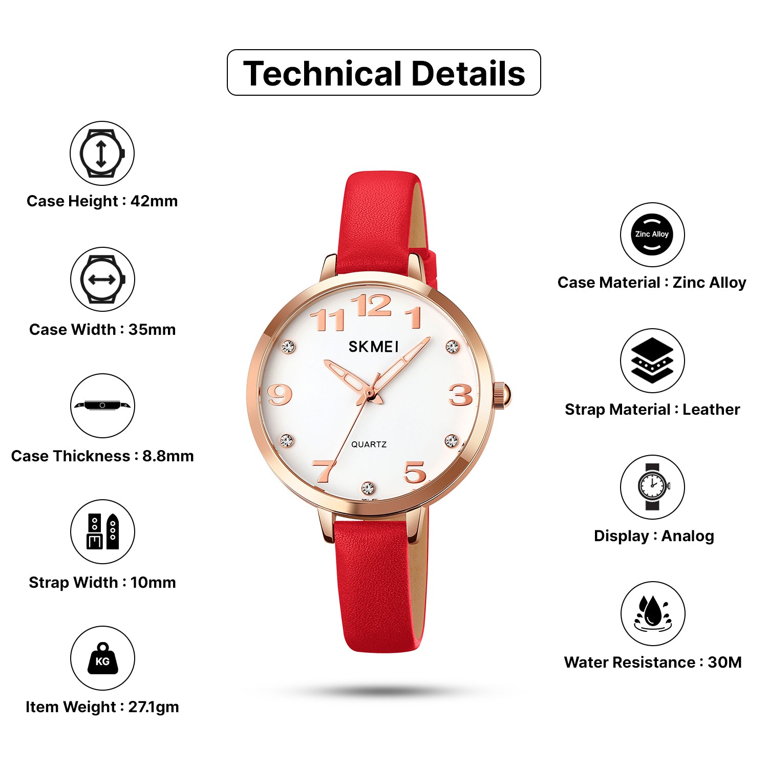 Skmei Quartz Analog Dial Leather Strap Watch for Women - 2028