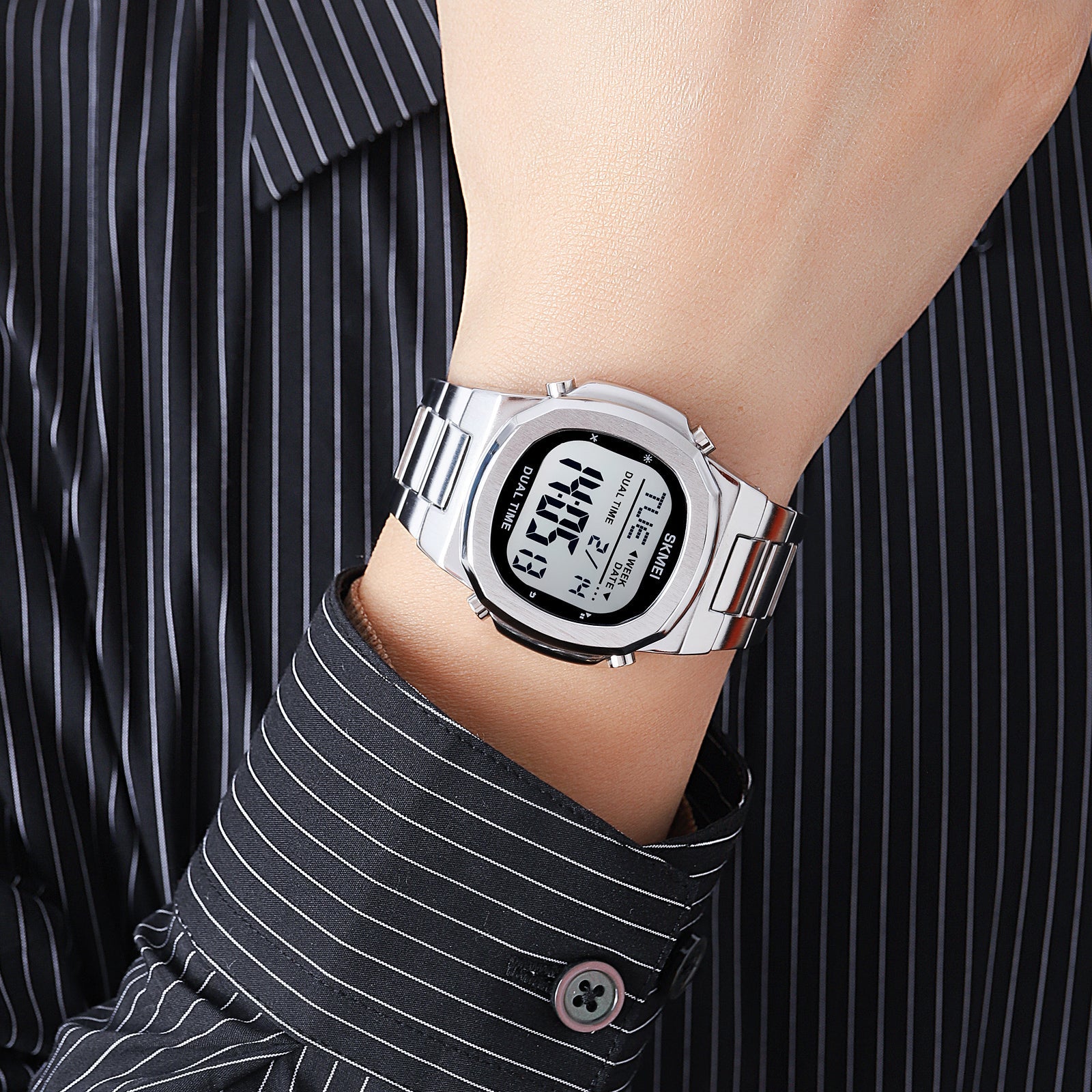 Skmei Digital Dial Stainless Steel Strap Watch for Men - 2004