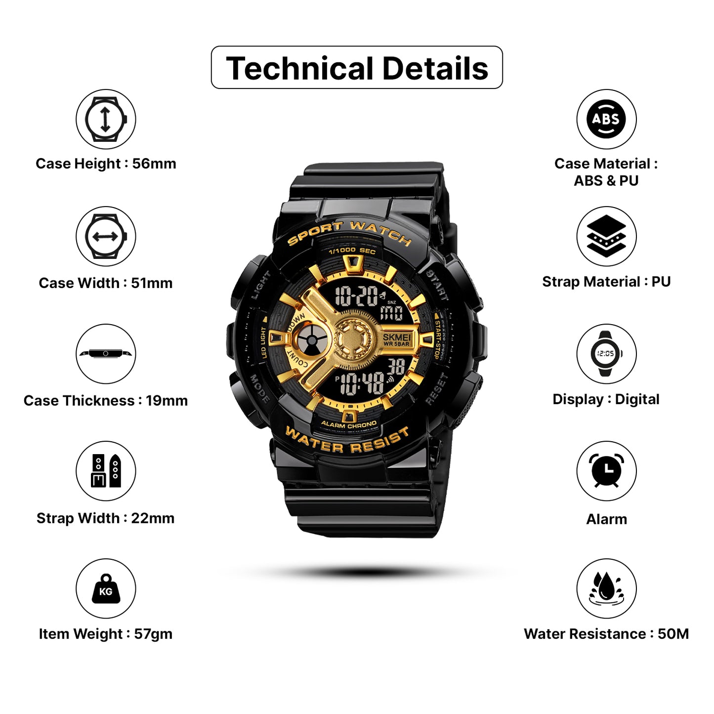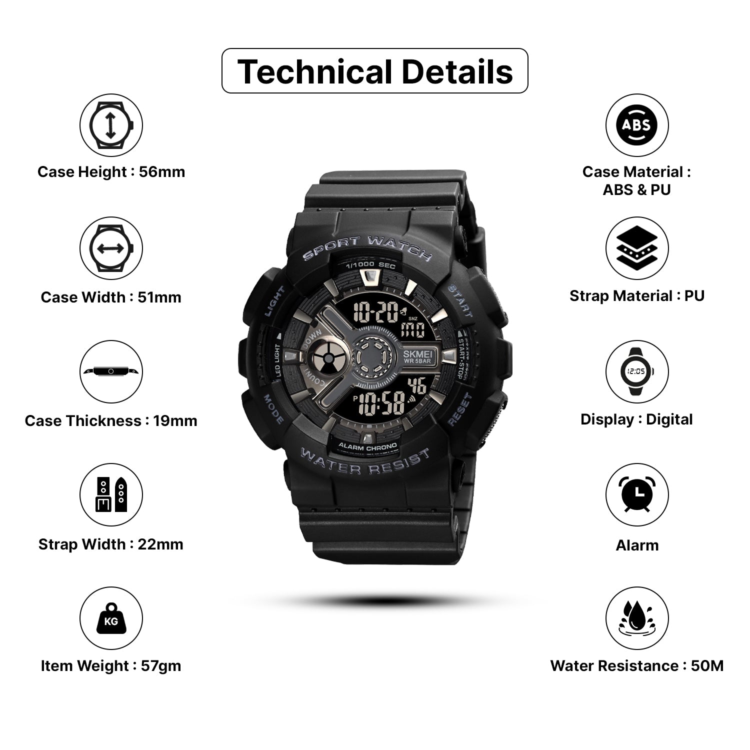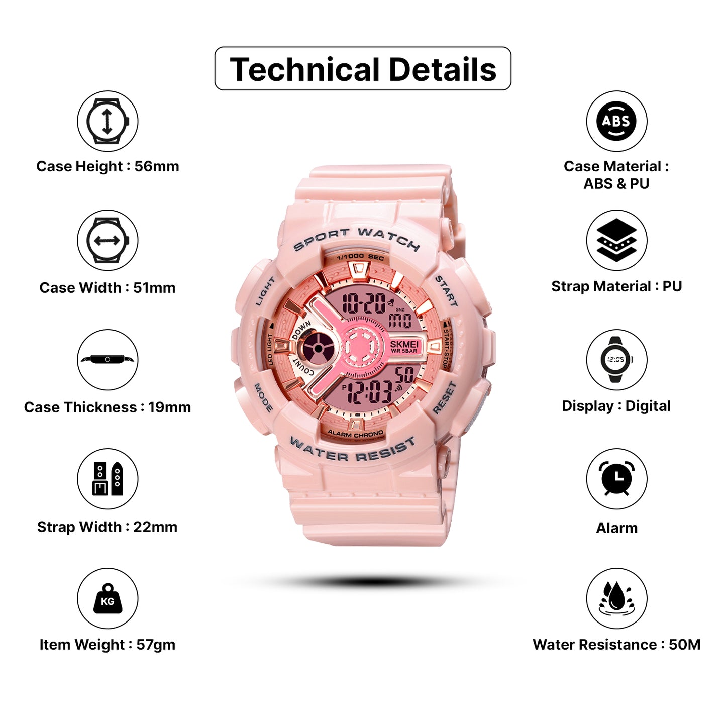 This SKMEI casual watch is designed for both men and women (unisex) and weighs 150g, making it a reliable choice for daily wear and professional settings. Featuring a sleek design and manufactured in India, it is available in multiple colors. Ideal for casual wear, business environments, or outdoor activities.