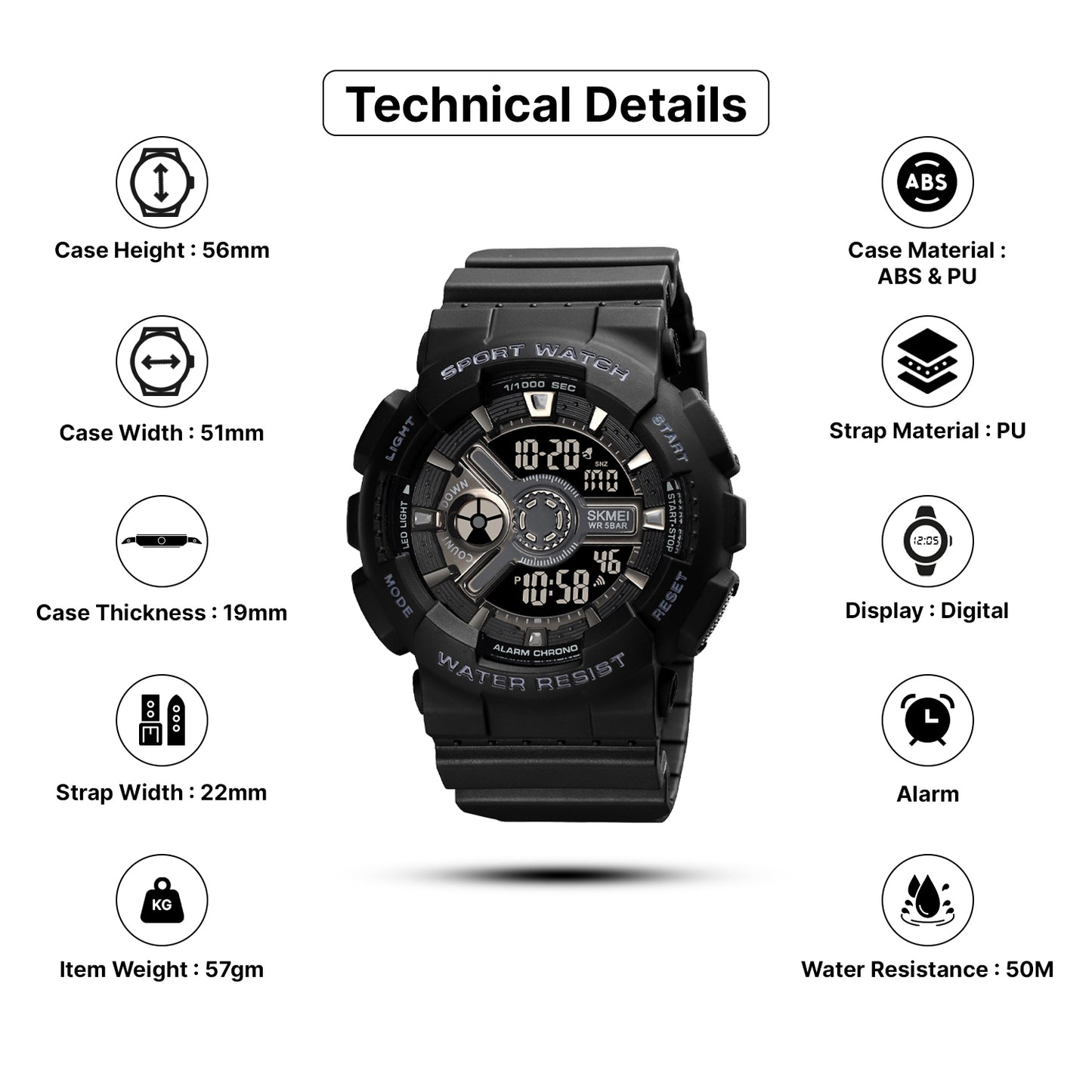 Skmei Digital Dial TPU Strap Watch for Men - S231