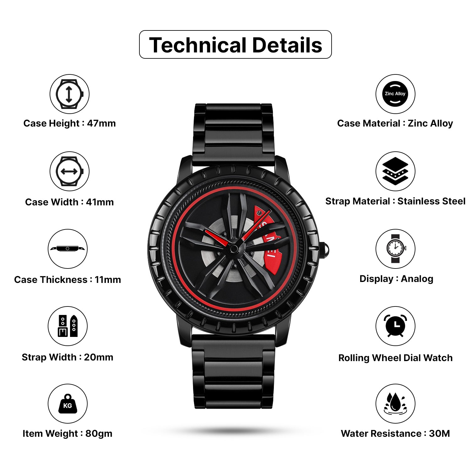 The SKMEI mens watch features multiple wheel designs on the dial, giving it a classy and sophisticated look. Available in 2 dial shades and 2 types of wristbands, it combines style with realism. Built with a durable metal case, solid stainless-steel strap, and glass dial window, it ensures toughness and durability. With 30M water resistance, zinc alloy case, and quartz movement, it offers accuracy and high quality, making it a perfect choice for daily wear or any occasion.