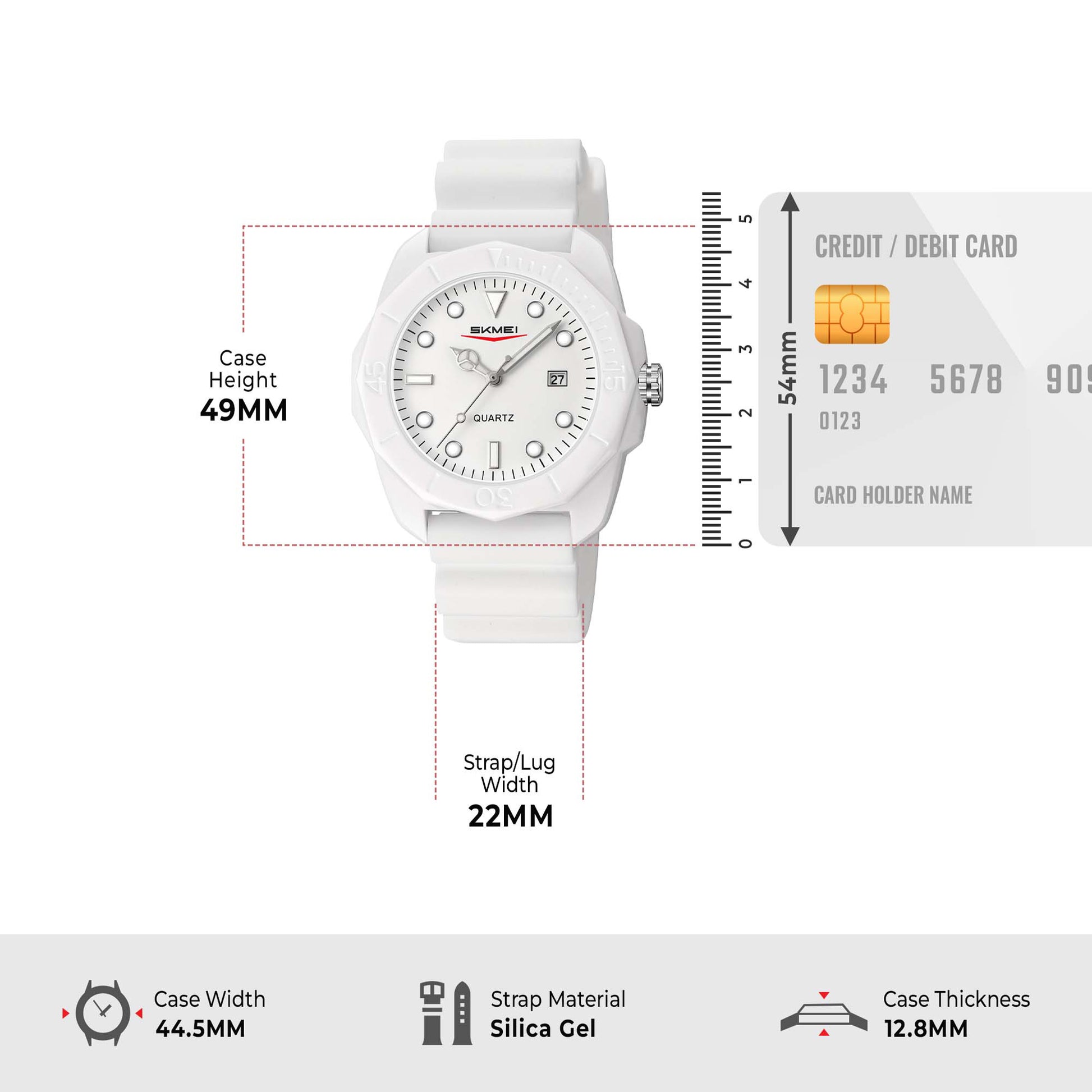 SKMEI 2393 Quartz Watch , a versatile and stylish mens watch built for durability, precision, and comfort . Whether you need a casual mens watch , an outdoor sports watch , or a fashionable watch for teens , this timepiece is the perfect choice. Designed with a rugged ABS case, glass crystal, and soft silicone band , this durable wristwatch is water-resistant up to 50M , making it great for light water activities and everyday wear . Powered by a high-precision quartz movement , the SKMEI mens watch ensures accurate timekeeping , while the date display function adds extra convenience. The lightweight design (only 46.2g) and 44.5mm case width make it an ideal mens watch for sports, travel, and work .